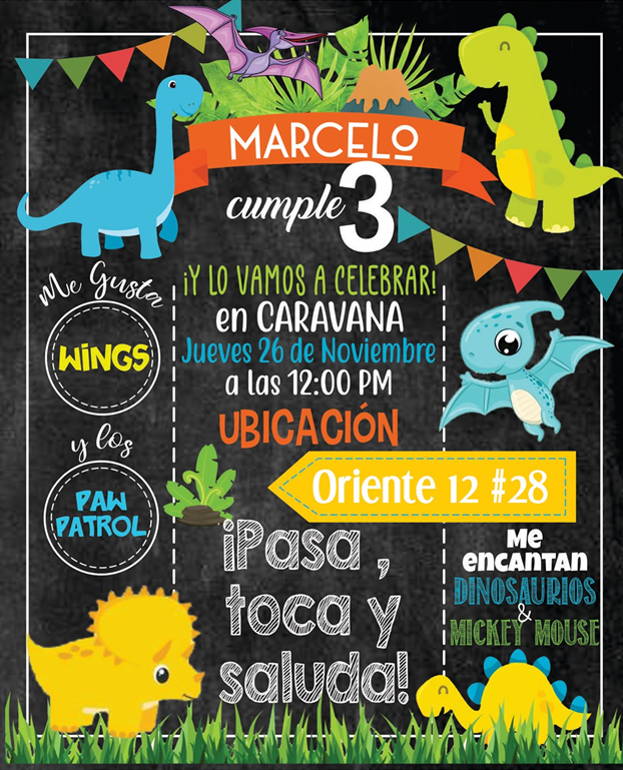 Con una invitación digital de Dinosaurios, es una forma divertida, practica de invitar a tus invitados.