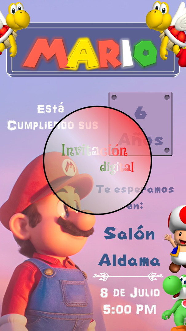 Una invitación digital con temática de Mario Bros hace que tu evento comience de una manera llamativa al compartirla con tus amigos. Esta invitación está inspirada en el protagonista de la película Mario Bros.