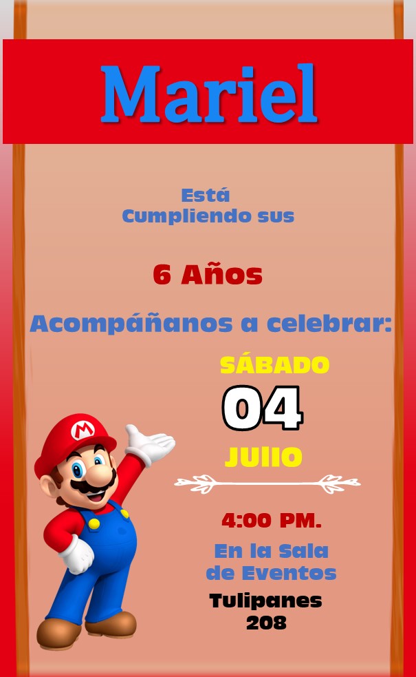 Pide tu Invitación de Mario Bross a un precio Accesible. Nos encargamos de adaptar la Invitación de acuerdo a la Información que nos proporciones.